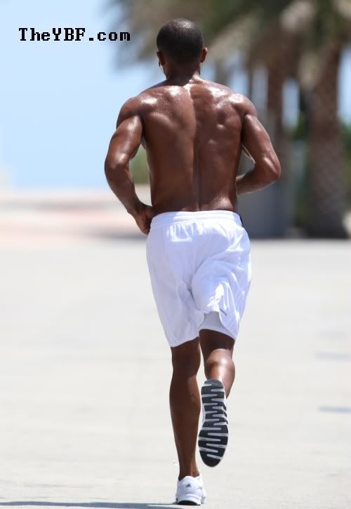 Sigh.....we love watching him jog away. Maybe he's jogging back to the studio to finishing working on his new album? He recently hinted that he is open to recording a song with Justin Bieber.