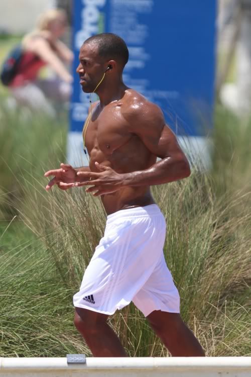 Craig David was spotted jogging down the streets of Miami Beach, FL with his shirt off today. See the pics inside....